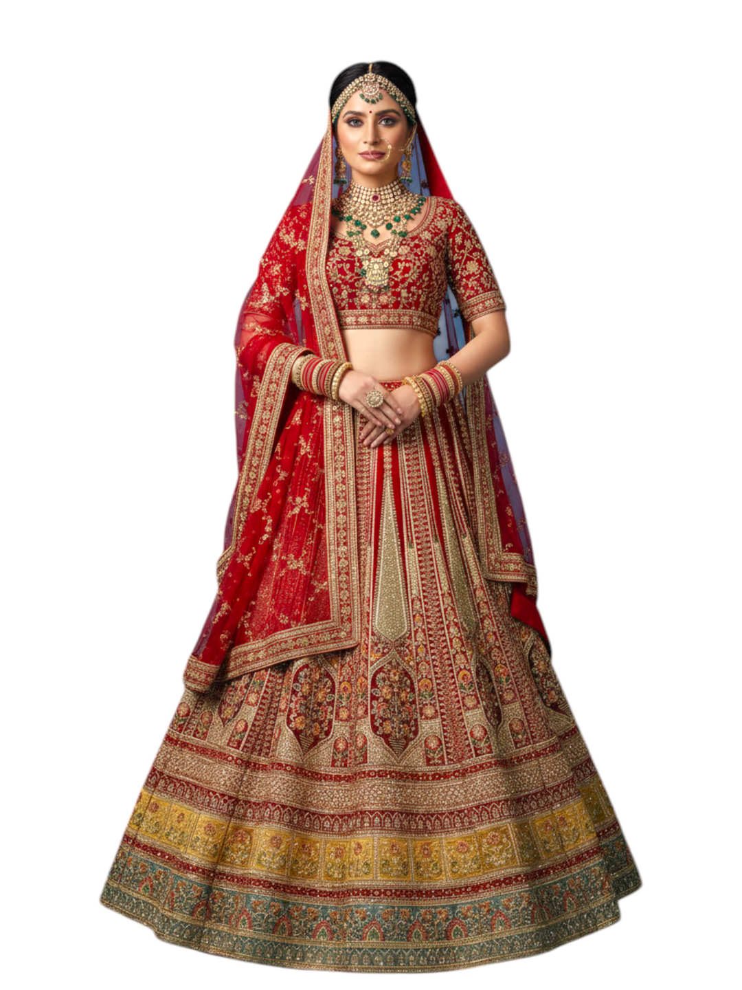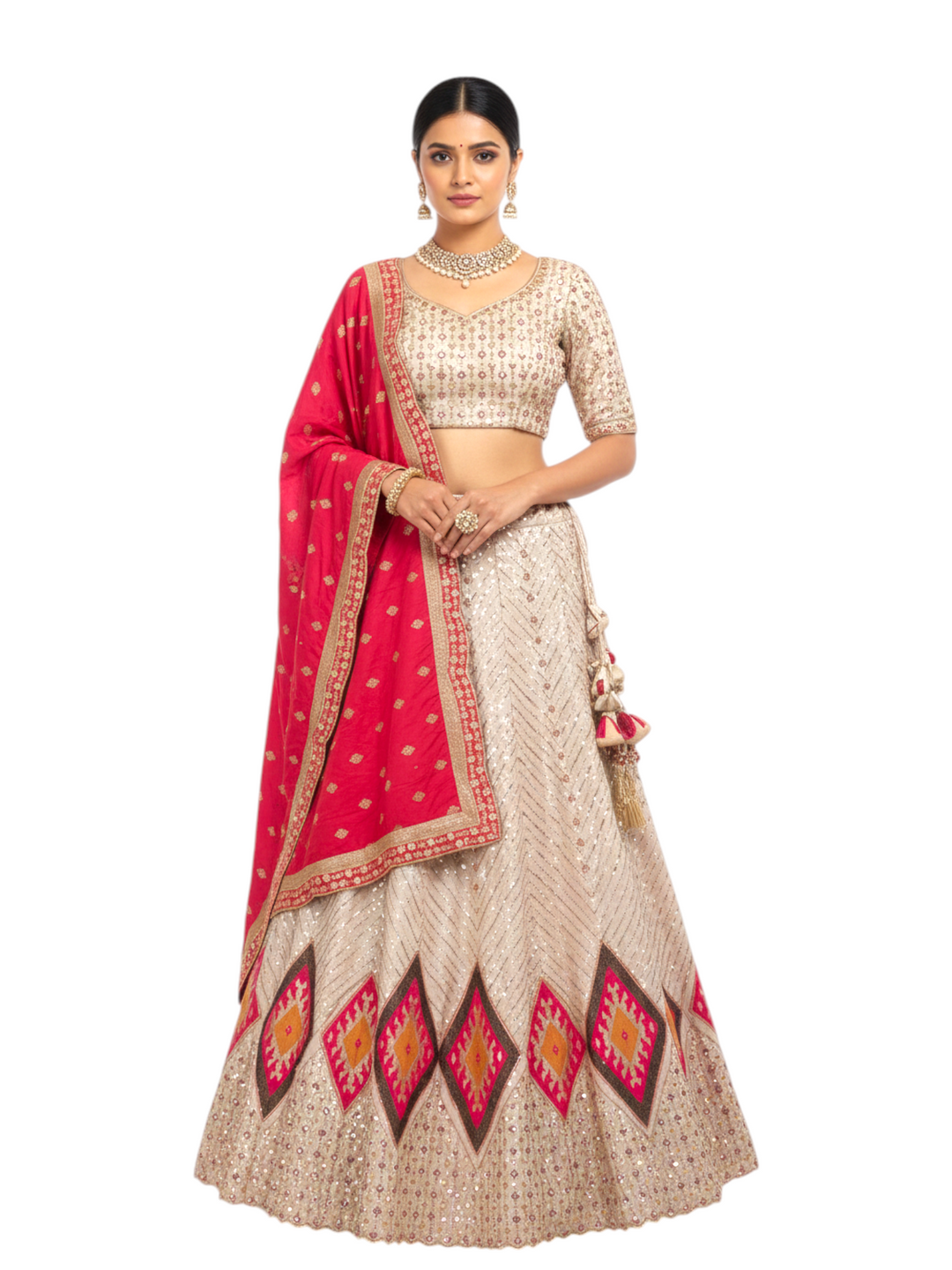 Antique Beige Zari & Mirror Work Bridal Lehenga