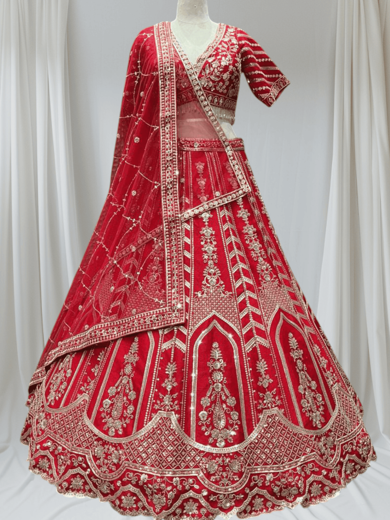 Elevate your bridal look with our luxurious heavy embroidered bridal lehenga, crafted for brides who desire elegance, richness, and timeless beauty.